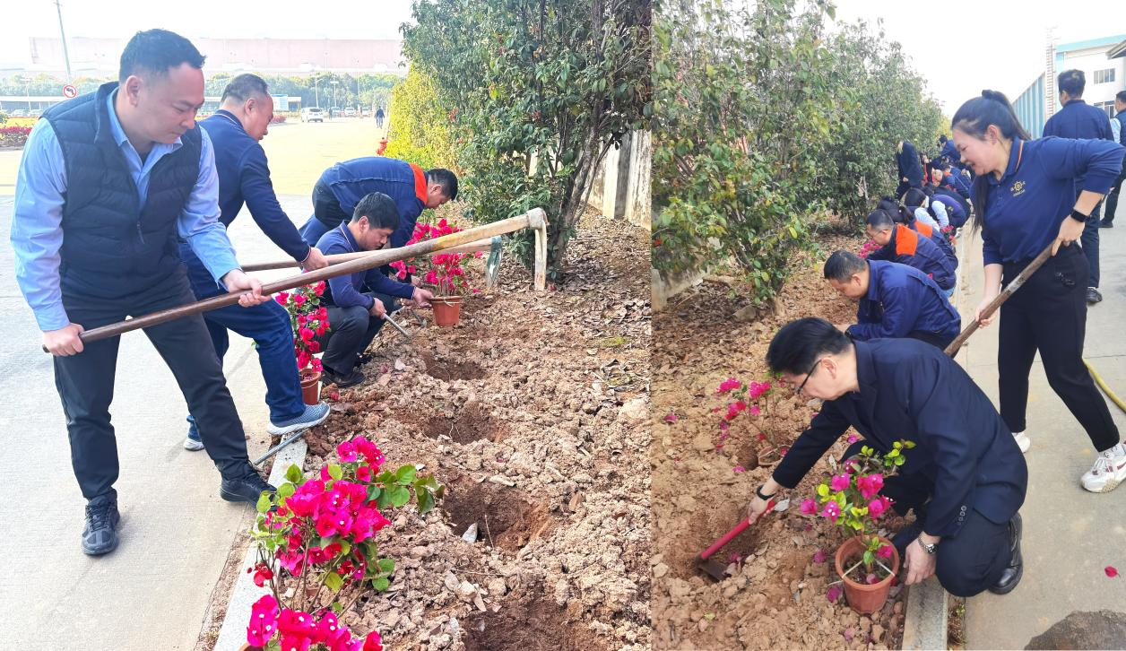 春阳暖照,绿意萌发。植树现场,福贞人分工明确、配合默契,井然有序地完成每一个植树环节。高管团队与基层员工并肩劳作、同心协力,有的挥锹铲土、夯实根基,有的扶苗校准、调整角度,有的提水灌溉、滋养新苗,用双手为厂区增添一抹抹新绿,为每一株小树苗的茁壮成长筑牢基础。